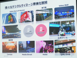 LGのデジタルサイネージ事業は、ビルや競技場などの屋外における大型広告から、地下鉄や商業施設内の屋内での展開など、全世界向けに幅広いラインナップを取り揃えて展開している。
