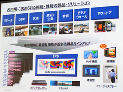 説明会では、同社のデジタルサイネージ事業推進室長・斉藤秀実氏と、IT&ID Salesパート 専任部長・尾崎孝之氏が登壇。デジタルサイネージ事業の紹介と、有機ELデジタルサイネージの新製品4モデルについての技術説明が行われた。