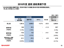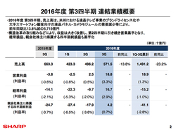 シャープ(株)は、2016年度第3四半期の連結業績を発表した。