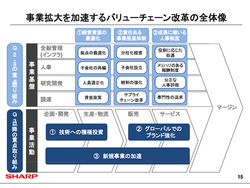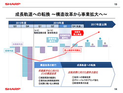 同社の野村勝明副社長は「戴社長体制になり、経営のスピードが非常に速くなった。グローバルでの戦い方が社員にも浸透してきたように思う」「これまでは構造改革のフェーズということで、どちらかと言うと“削減”が多かった。これにより各事業の体質が変わってきたので、今後は“競争力の強化”に力を入れ、新規事業の拡大を図っていく」、そして「再び“技術のシャープ”を確固たるものにしていく」と語った。