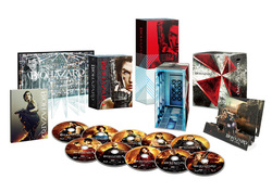 また、シリーズ6作品すべてを収めた10枚組ボックス『バイオハザード ブルーレイ アルティメット・コンプリート・ボックス(完全数量限定)』(¥14,800・税抜/BPBH-01149)も同時発売。『バイオハザード:ザ・ファイナル』のブルーレイ プレミアム・3Dエディションに前シリーズ5作のセット。アンブレラ社特別研究所〈ハイブ〉レーザートラップルームBOX仕様、豪華クリアスリーブ+デジトレイ仕様、初回限定ポップアップカードと60ページの特製ブックレットを封入。