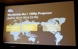 また「フルHDプロジェクターの売上を地域で見れば、ヨーローッパでは30%、中国では28%とそれぞれ1位を獲得し、アメリカでは16%と3位に着けている。アジアでは18%で2位と好調。製品は数多くの評価と賞を受けており、これは最新の技術とマーケティングの成果であると考えている」と世界的な実績をアピールした。