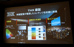 またTHX HD規格について、「クリエイターが意図したコンテンツを的確に表現できる。その認証には約18ヶ月にわたっての製品開発を実施しており、200回におよぶTHX試験場でのテスト、500箇所のデータポイント修正とテスティングを必要とした」とその認証の難しさに触れた。
