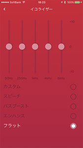 イコライザー機能も装備。50Hz/250Hz/1kHz/4kHz/8kHzの5バンドをそれぞれ±10dBで調整できる。「スピーチ」「バスブースト」「エンハンス」の各プリセットモードも用意している。