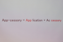 App-cessoryとは、アプリを示す「App」と、イヤホンをはじめとするスマートフォン周辺機器という意味での「accessory」を組み合わせた造語。アプリ+アクセサリーという意味が込められている。