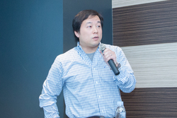RAYZの詳細については、同社でマーケティングを担当する甲斐拓氏が行った。甲斐氏は、「RATZでは音質はもちろん、デザインにも消費電力にも妥協しないことを目指して開発を行った」とコメント。製品の詳細なポイントについて紹介していった(製品詳細はこちらの記事を参照)。