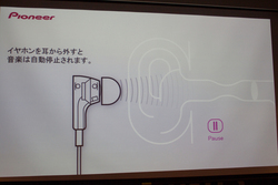 そのほか、周囲の環境に応じて調整できるノイズキャンセリング機能や、集音マイクを流用して実現した、イヤホン着脱に音楽のスタート/ストップが連動するオートポーズ機能なども紹介された。
