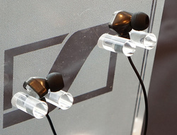 さらにイヤホンについても、新ドライバーを搭載したイヤホンのプロトタイプを展示。ドライバーの素材はまだ秘密とのことだが、「ウッドではない」という。ハウジングは3Dプリンターで作ったもので、まだ本当の試作機段階。素材もこれから検討していくという。こういったものが見られるのも、このイベントの醍醐味と言えるだろう。