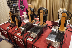 完実電気ブースでは、まず毎回おなじみのSTAXブランドが主要製品を展示。今回は新製品はないとのことだが、5月〜6月頃に向けて最上位アンプの発売を予定しているという。組み合わせるヘッドホンは、これも最上位のSR-009が想定される。