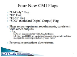 フラグにも4つの新しいものが設定される。それぞれ「L2-Only」フラグ、「EI」フラグ、「HDR」フラグ、「SDO」(Standard Digital Output)フラグとなる。L2-OnlyフラグとHDRフラグは、コンテンツプロバイダーがアップストリームする際などに設定する。