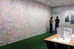 展示階の一番上にあたる4階のフロアでは、Part-1から引き続きソニービルへの期待や思いを書き込めるスペースを用意。これまでの書き込みも壁一面に貼り付け展示されている。同フロアには後日販売される予定のソニービル外壁も展示。ここで注文することも可能とのこと。