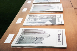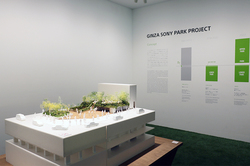 1階には「銀座ソニーパーク」のイメージ模型を設置し、壁面で本展示の概要が紹介される。数寄屋橋の交差点に面して大きく窓が開けた2階には、Part-1で行われたトークイベントなどが記事化されたJournal紙がvol.1〜5まで用意されている。