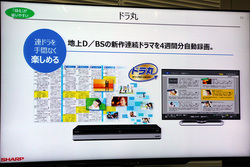 従来からある「ドラ丸」機能も搭載。地上デジタルとBSデジタルの新番組を4週間自動録画する機能で、ドラマだけでなくアニメにも利用できる。