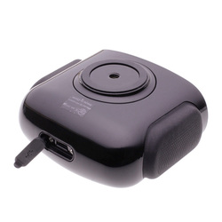 保存ファイル型式は静止画がJPG、動画がMP4(H.264)。内蔵メモリは64GBで、記録容量は静止画で約65,000枚、動画で約600分。約2時間の充電で最大100分動作する。ホワイトバランスと露出はオート。外形寸法は93W×46H×77mm、質量は約172g。
