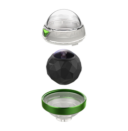 「ダイブハウジング」は、360flyシリーズ専用の水中撮影用ハウジング。本製品を装着することで360flyシリーズがもともと備える防水性能を超える、水深40mまでの水中撮影を可能にする。また、360flyシリーズに装着したまま、本体のワンプッシュボタンで三脚に取り付けることもできる。