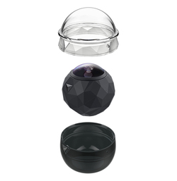 「プロテクティブケース」は、360flyシリーズを外部の衝撃や汚れから保護する専用ケース。材質はレンズ保護部分にアクリル、本体保護部分にラバーを採用する。なお、本体保護部分には、三脚など各種アクセサリーとの接続用に開口部が設けられており、完全には密封されない仕様となっている。
