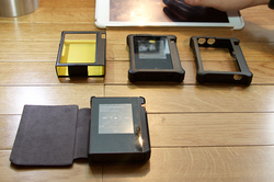 当日は今後予定しているオプションとして、共通の保護ガラスやケースを参考出展していた。ケースはそれぞれ機種によって展開が異なり、rubatoはアルミニウムバンパーとPUレザー製スリーブケースの2機種、privateはPUレザー製ケースをはめ込み式のバスタブタイプと手帳型タイプで展開するという。