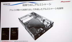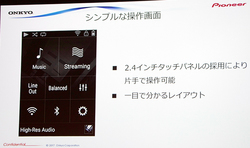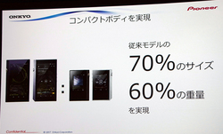 本機の開発にあたって、「オンキヨーもパイオニアもホームオーディオにて確固たるポジションを築いており、統合後はポータブルプレーヤーやスマホを展開して市場を広げている。そうした流れの中で、ホームAVで培ってきたオーディオ技術と、DAPやスマホで培ったコンパクトな筐体で高音質を実現する技術を結集した」とのこと。