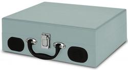 1950年代に流行したトランク型のレコードプレーヤーをイメージして作られたというVinyl Transportは、水色、赤色、黒色の3色をラインナップ。ハンドルがついており持ち運びがしやすく、電源アダプターのほかに単3電池4本で最大6時間の駆動も可能。セラミックカートリッジが付属し、ステレオスピーカーを本体内部に搭載する。