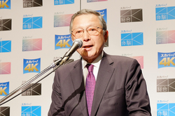 披露会では、スカパーJSATホールディングス 代表取締役社長 高田真治氏が登壇。「2012年頃から放送業界で4Kが話題になりはじめた。衛星が一番早く4Kに対応できるのではと考え実験を行い、2012年11月にJリーグの生中継を行い、4Kの伝送と制作ができる手応えを感じた。2014年に日本で4K試験放送が始まったが、私どもの取り組みがそのトリガーになったのではないかと自負している」と、これまでの活動について触れた。