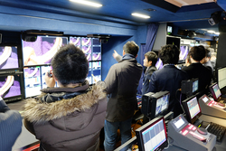 早尻氏によれば、SR-1は「カメラ8台を常設し、最大20台分の機器を中継車内に実装できる。また全幅は2,495mmだが、4,195mmまで両側を拡幅可能で、制作室にあたるスペースを広く確保できる」と作業の効率化が図られているという。「スイッチャー卓は前後にスライドでき、スイッチャーパネルは左右に移動可能。モニターウォールはマルチビューワーを採用するため、番組に合わせて自由なデザインでピクチャーモニターを表示できる」。