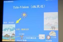 技術開発の経緯について「人間は見るという行為で、風景を脳にコピーする。そこで大事なのは距離情報。ピントが合うというのは、映像に距離情報をのせて脳に行くということ。800万画素のカメラでカメラマンが撮影した映像を1/300の圧縮伝送でディスプレイに表示させる。ここで圧縮される情報は、ある対象物をキレイに映すといったものであり、その奥にある例えば山や木については考えられていない」という。