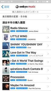 楽曲は購入履歴から検索するが、表示期間は「2016年」「2017年」「過去半年」となる。古くとも2016年となっているのは、e-onkyo musicの仕様に合わせたものとしている。