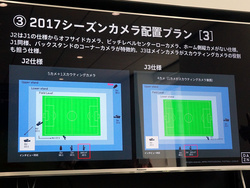 またカメラ台数で言うと、J3はさらに少ない4台での撮影だが、「カメラが少ないから中継映像のクオリティも低くなるかと言うとそうではない」と水野氏はコメント。「1台のカメラがカバーしなければいけない範囲が増えるのでスタッフの技量は求められるが、実際に見てみても、J3の映像制作を担当してもらっている各制作会社の制作能力は高いと感じている」と述べた。