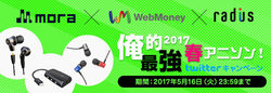 mora、「俺的2017最強春アニソン」ツイートでラディウス機器やWebMoneyが当たるキャンペーン