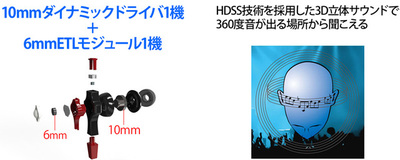 本イヤホンは10mmダイナミックドライバー1基に加えて、HDSS技術を実現するための6mmETLモジュールを1基搭載している。360度全方向から繊細な音を聴くことができ、特に3D立体音響で作られたゲームやVRコンテンツをよりリアルに楽しめるという。