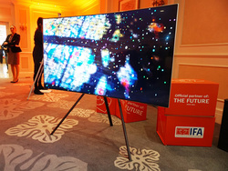 IFA GPCの会場ではTHE FRAMEシリーズの実機も展示されていた。正直に言って映像の解像度やコントラスト感はそこそこの出来映えという印象を受けたが、壁掛けスタイルで導入ができればそれなりのインパクトを持つ製品だと思う。プロダクト展示のコーナーで説明に立つサムスンのスタッフは「今後、欧州での導入に向けてインストーラーとのパートナーシップも強化しながら壁掛け設置を積極的に推していきたい」と語っていた。