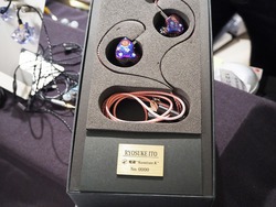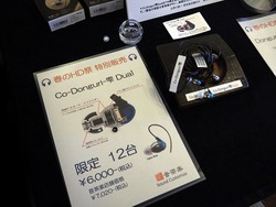 その隣の音茶楽ブースでは、同じ「Co-Dodonguri雫」を同社が改造した「Co-Donguri-雫Dual」を出展。今年2月の「ポタ研」で試験販売された「Donguri-欅Ti Plus Dual」と同じく、高音域のピークを抑える「トルネードイコライザー」を増設して2か所に設けてあり、より大人しく、耳に優しい音になっているという。以前から耳に刺さりにくい落ち着いた音を求める声があり、今回の「Co-Donguri」もそれに応じた物とのこと。こちらの改造モデルは会場で特別販売をしているほか、東京都世田谷区の音茶楽店舗にて購入ができる。