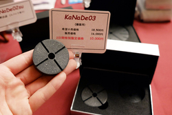 金井製作所が展開するKaNaDeは、オーディオ用インシュレーターを取り扱っている。据え置きのヘッドホンアンプやプレーヤーに用いるインシュレーターとして、同社の最新製品「KaNaDe03」を展示。会場限定で通常18,500円の価格が10,000円で販売される。また、スパイク受け「KaNaDe02SU」も参考出展された。