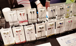 また5月中旬の発売が予定されている「charisma wireless」が参考出展された。価格は予価3,980円(税抜)。6mmネオジムドライバーとIPX2防滴仕様に加え、マグネット式イヤーパッドを採用。女性デザイナーによる女性向けにデザインされたイヤホンとのこと。これら3モデルは、ケーブルをリモコンに巻きつけて保存できるように、あらかじめ設計されていることも特徴となる。