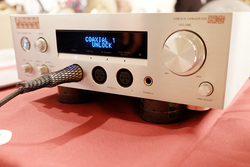そのほか同社ブースでは、YAMAHAブランドのイヤホンならびにヘッドホン製品や、Questyleブランドのアンプ製品を展示。Questyleは新製品としてDAC内蔵ヘッドホンアンプ「CMA400i」を参考展示。DACチップにAKM「AK4490EQ」を搭載し、最大384kHz/32bit PCM、11.2MHz DSDに対応。ゲインは7.8dBで、最大出力は106mW。6.3mmステレオ標準、4ピン XLR、2.5mm 4極の出力端子を搭載する。5月〜6月の発売を予定しており、価格は予価で90,000円前後とのこと。