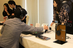 ULTRASONEは、プロ向けモニターヘッドホン“Signature”シリーズの新モデル「Signature Studio」を展示。じっくりと音質を確かめてもらえるよう、ゆとりある試聴スペースを設けている。