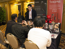 フリーウェイのブースでは、発売されたばかりの1MOREブランドの4ドライバー搭載ハイレゾ対応イヤホン「E1010」をメインに展示。なお、E1010のイベント出展は今回が初となる。