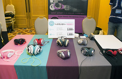 mimimamoのブースでは、ヘッドホンカバー「mimimamo」を展示。恒例の「ヘッドホン対応表ご協力キャンペーン」も実施している。同社のヘッドホン対応表に載っていないヘッドホンを持って行ってテストすると、「mimimamo」がプレゼントされる。販売終了した古い機種や国内未発表モデルも大歓迎とのことだ。