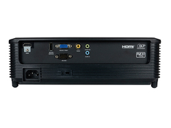 機能面では、DLP-Link式の3Dに対応。レンズシフト機能は比搭載だが、±40°のキーストン補正にも対応する。また、約10秒で電源をオフに出来る「クイックシャットダウン」を搭載する。
