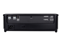 【SPEC】●表示素子:FHD(1920×1080)0.65型 DMDパネル ●アスペクト比:16:9 ●明るさ:3,300ルーメン ●コントラスト比:22,000:1 ●投写レンズ:F= 2.41〜2.53 、f=21.85〜24mm 、手動ズーム・レンズフォーカス ●使用ランプ:195W(ユーザー交換可能) ●ランプ寿命:5,000時間 (ブライトモード)、6,000時間 (エコモード)、7,000時間(ダイナミックモード)、8,000時間(エコプラスモード) ●入力端子:HDMI(MHL)×1、VGA×1、オーディオ入力×1 ●出力端子:オーディオ (3.5mmジャック)×1 ●コントロール端子:USBポート(メーカーメンテナンス用)×1 ●スピーカー:2W ●騒音値:29dB ●電源:AC 100〜240V;50/60Hz ●消費電力:253W(ブライトモード) ●待機電力:0.5W以下 ●外形寸法:298W×96.5H×230Dmm(突起部含む) ●質量:2.2kg