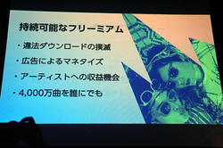 さらに「無料サービスであっても、再生されたらきちんとアーティストにお金が入るようなシステムを作った。具体的には広告でマネタイズしている」と付け加え、しっかりとアーティストに還元するシステムを構築していることが持続可能性に結びついていると指摘した。
