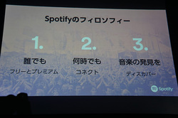 Spotifyのフィロソフィーは、おおきく「誰でも」「いつでも」「音楽の発見」の3点に集約される。