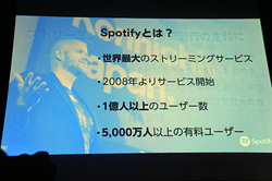 そのうえで玉木氏は、自身が運営に携わるSpotifyについて紹介。2008年にサービス開始し、現在では1億人以上のユーザー数がいて、うち約半数の5,000万人以上が有料ユーザーであることなどをあらためて語った。