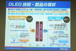 今後の展開については「パネルは月あたり2,300枚程度といった少量生産。量産というイメージはなく、まずはこの範囲でのマーケットを想定している。将来の布石として、車用のパネルなども開発をしている。戦略的な判断をしながら、あるいは戦略的、資金的なパートナーと共に進めるなどが考えられるが、あくまでJOLEDは開発会社として印刷方式の有機ELを完成させて、それをベースに前に進むことになる」と語った。