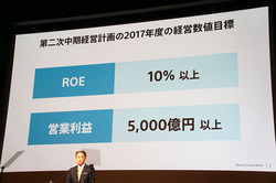 ソニー(株)は本日、経営方針説明会を開催。2017年度を最終年度とする現在の中期経営計画の進捗や、来期以降の成長に関する取り組みについて説明を行った。