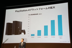 PS4は今期1,800万台の出荷を予定し、年度末の累計出荷台数は7,800万台を予定する。「プラットフォームが収穫期を迎える中、多彩なネットワークサービスを展開する」とし、MAUが7,000万人を超えているPSNをベースに、今後は有料課金サービス「PS Plus」を拡充するなどして、さらにネットワークサービスの収益拡大を行うとした。