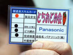 なお、この技能検定は例えば「ビス締め」「完成検査」などといった具合に、項目ごとになっている。検査技能の研修では、例えばドット欠けなどといった不具合がないかを、全白の画面が表示されてから6秒以内にチェックしなくてはならない。またビス締めでも、きちんとまっすぐビスを挿入できているか、そのビスに対して垂直にドライバーを当てられているか、一連の作業を規定の時間内に行えているかなどがチェックされる。