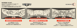 またScreenXで上映される映画は、シーンによって正面のみに映像が投影されるシーンと、両側面に映像が投影されるシーンがあり、左右に広がる画面は映画のシーンにさらなる抑揚と臨場感をもたらす効果を生み出し、映画自体の持つポテンシャルを最大限に表現するとしている。