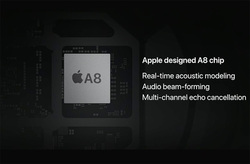 本体にはA8チップを搭載。リアルタイムの音響モデリング、オーディオビームフォーミングの計算、マルチチャンネルエコーキャンセリングなどに使われるという。