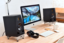 なお、“デスクトップ”とうたってはいるが、フロアから立ち上がるスピーカースタンド上でのスピーカーの微調整や、テレビサイドでの利用にも適しているとアピールする。